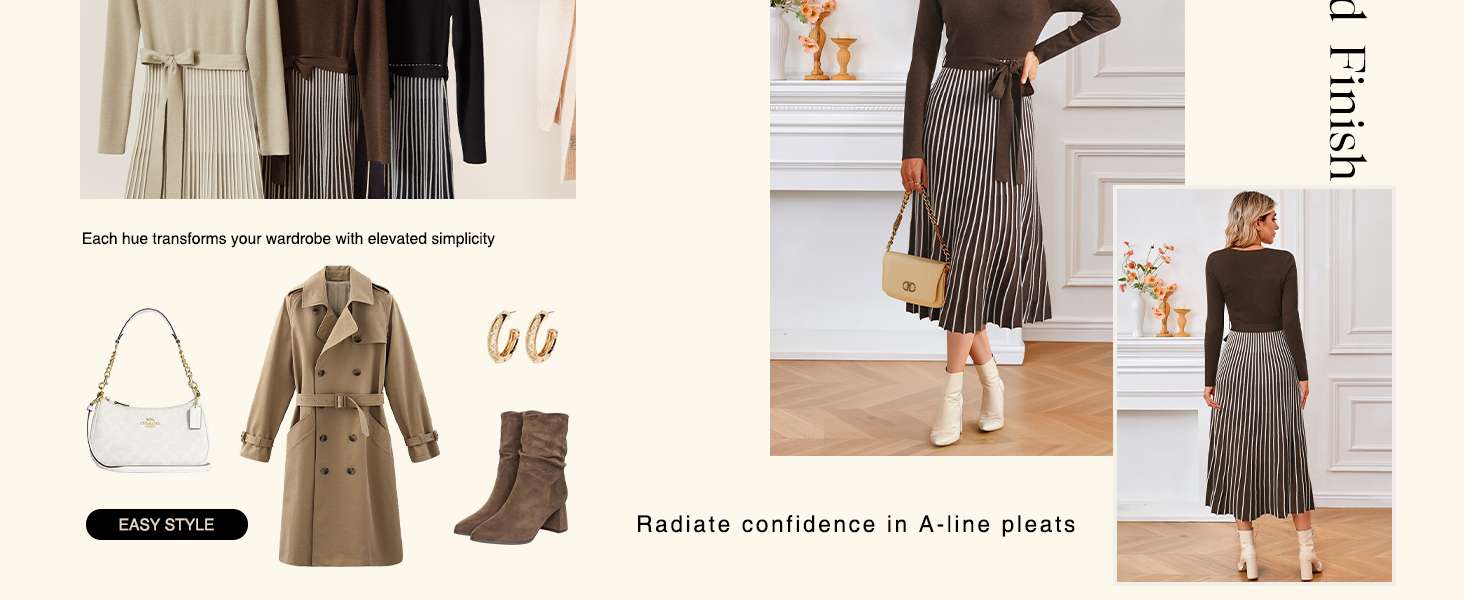 Arach&Cloz Women's Wool Blend Elegant Going Out Dress Cocktail Party Midi Dress