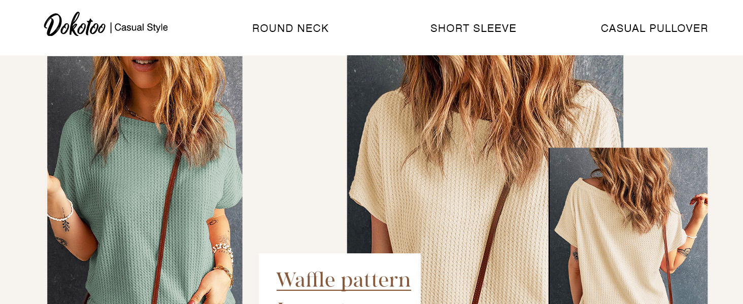 Dokotoo Women's Causual Boat Neck Short Sleeve Waffle Knit Shirts