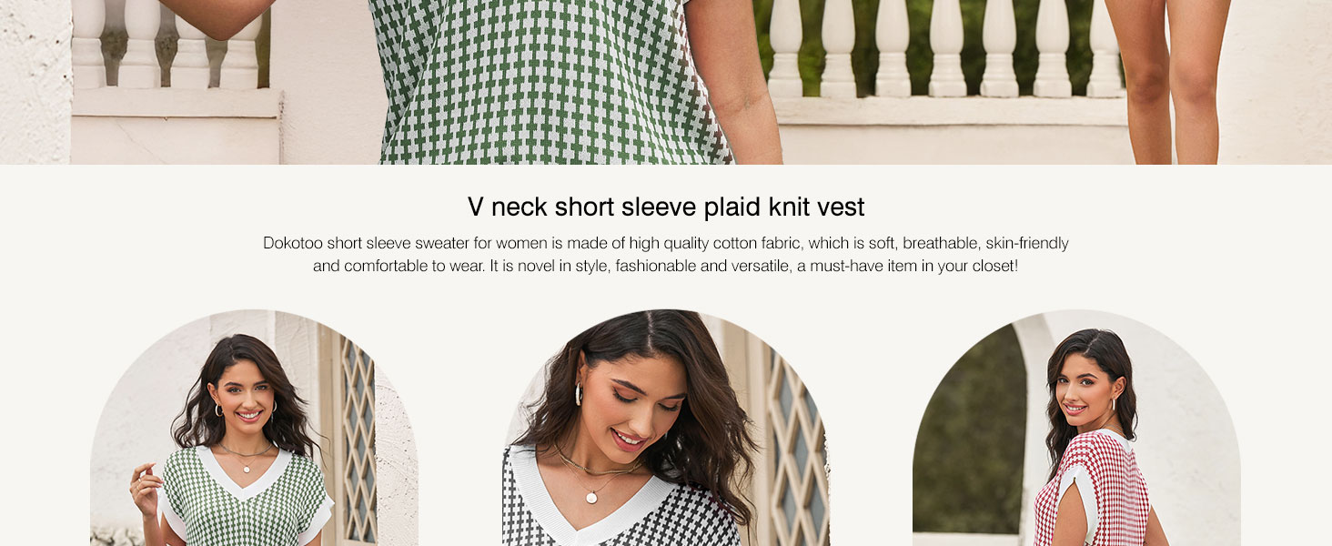 • Dokotoo Womens Casual Summer Tops V Neck Short Sleeve Plaid Knit Vest Loose Fit Pullover Sweaters Blouses