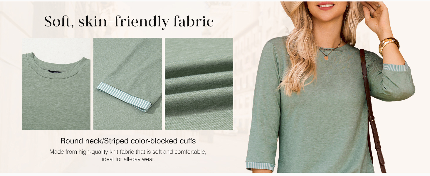 • Dokotoo Women's Shirts Lightweight 2025 Summer Fall Fashion 3/4 Length Sleeve T Shirts Casual Tops Basic Blouses