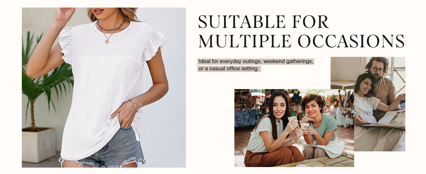 Women's T-Shirts Dressy Casual Ruffle Short Sleeve Tops