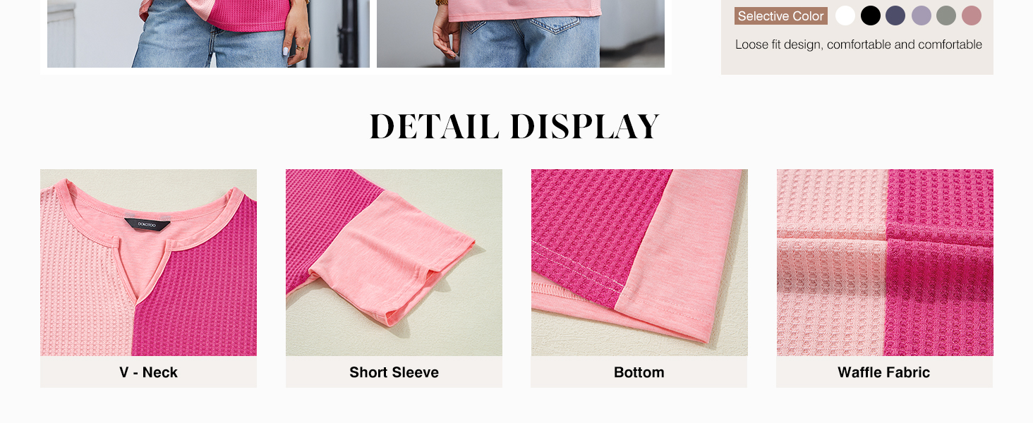 Dokotoo Half Sleeve Waffle Knit V Neck Patchwork Blouses