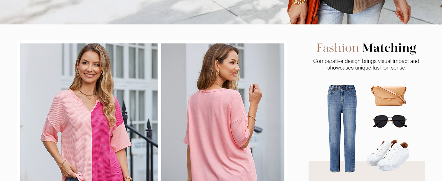 Dokotoo Half Sleeve Waffle Knit V Neck Patchwork Blouses