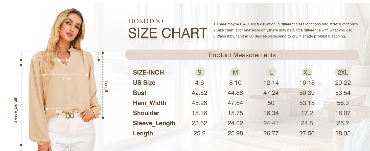 Dokotoo Ladies Tops and Blouses Button Down Shirts V Neck Long Sleeve Shirts