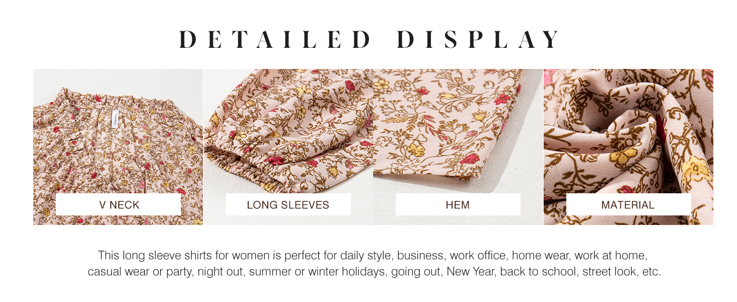Features: Elegant Boho Shirt for Women, Sexy Casual V Neck Blouse, Relaxed Fit, Blouses for Women Fashion 2024, Womens Tops and Blouses, Long Sleeves with Elastic Cuffs, Cute Tops for Women Trendy, Alicia Flowy Print, Front Smocked, Business Dressy Work Tops for Women.