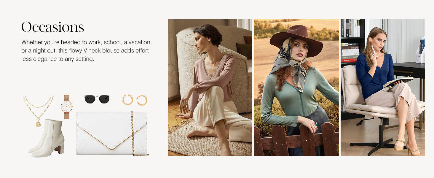 Dokotoo Womens Fall Fashion 2025 V Neck Braid Trim Long Sleeve Tops