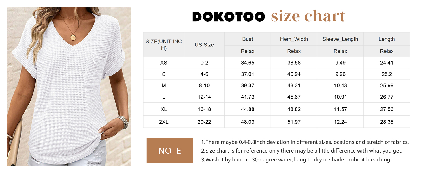 Dokotoo Womens Waffle Knit Tops 2025 Fall Summer V Neck Shirts Casual Trendy Women's Blouses Basic Tee