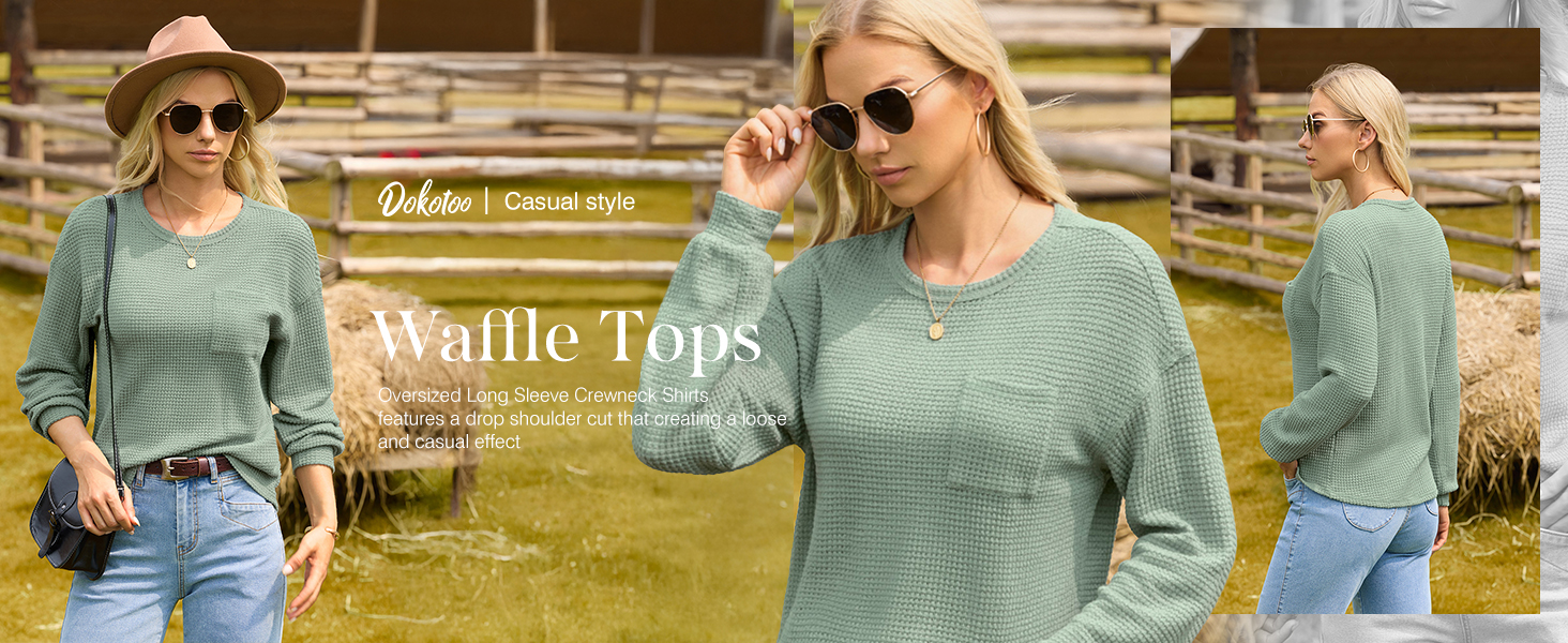 Dokotoo Womens Tops 2025 Long Sleeve Waffle Tops