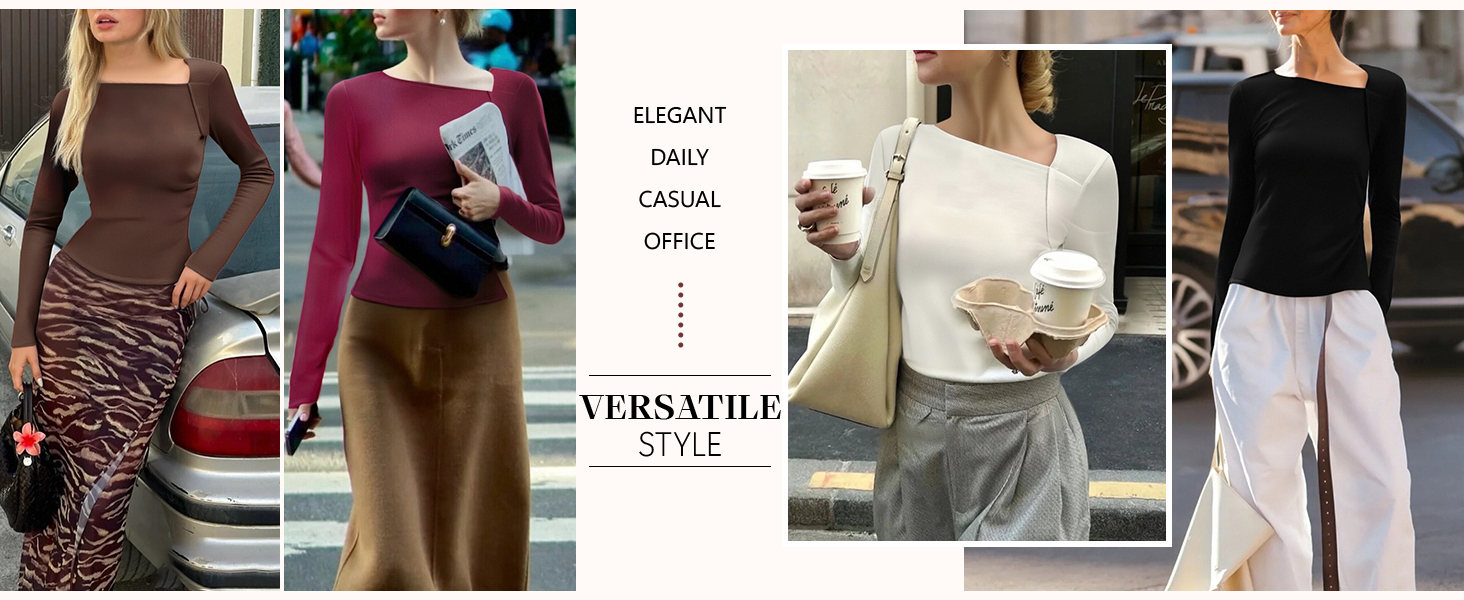 Women's Asymmetrical Neckline Long Sleeve Slimming Shirt for Work & Weekend