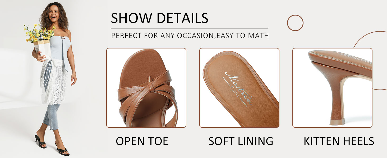 • Mostrin Strappy Kitten Heels for Women Round Open Toe Flip Flops Slip On Mules Heels Fashion Thong Heeled Sandals for Party Wedding Holiday