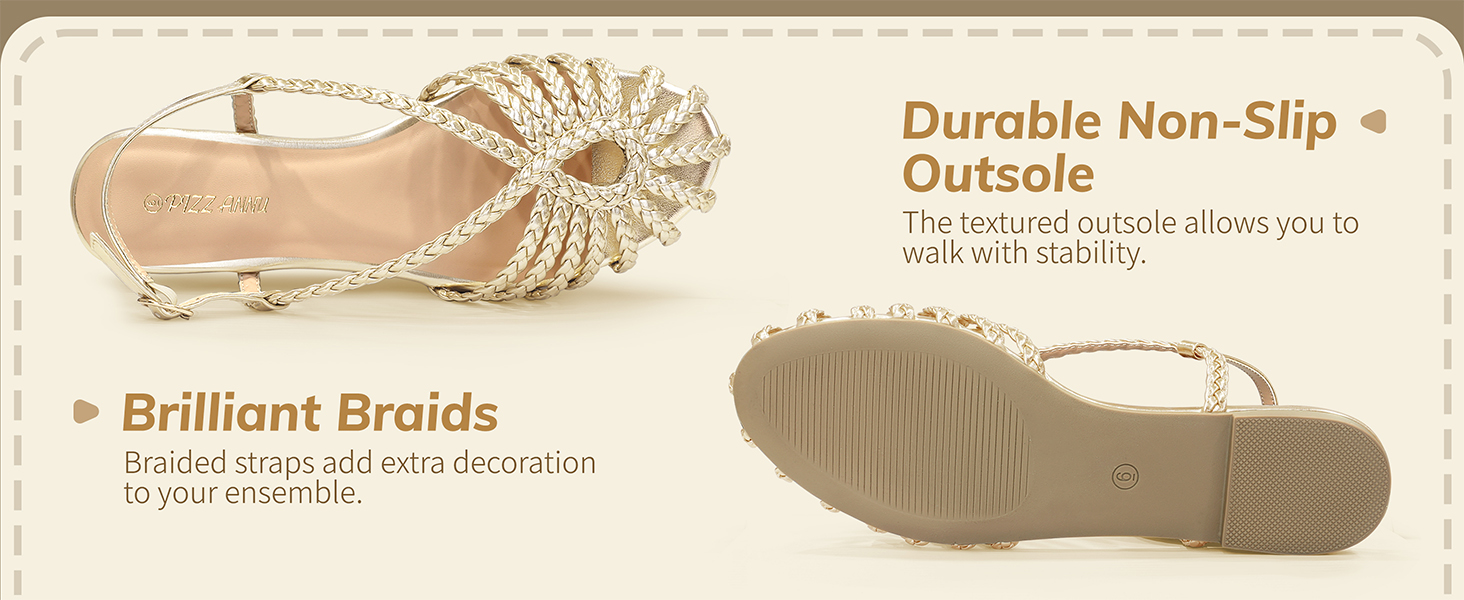 • PIZZ ANNU Women's Sophia Braided Flat Sandals Comfortable Memory Foam Walking Shoes Summer Gladiator Slingback Ankle Strap Strappy Sandals