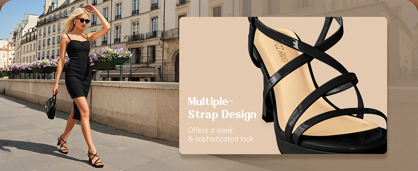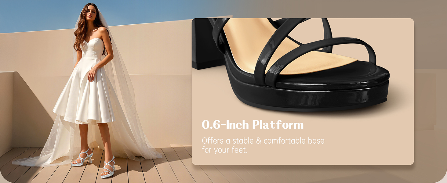 PIZZ ANNU Women's Vela Platform Heels Sandals Chunky Block Comfort Strappy Slingback Open Toe Heeled Sandals with Buckle Ankle Strap for Wedding Party Dress Pump Shoes