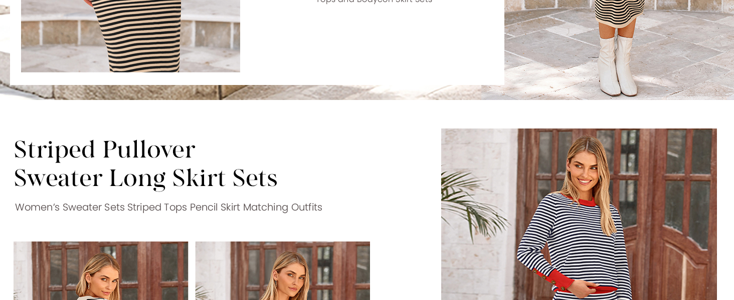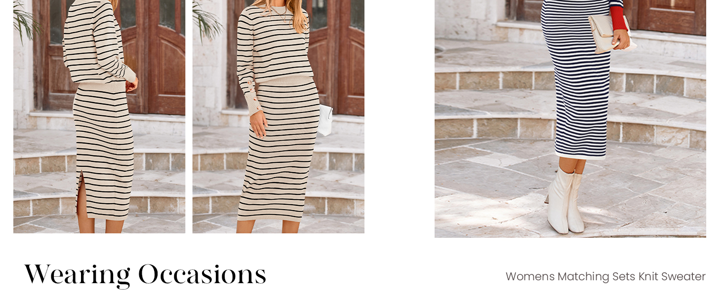 Women Striped Sweater Sets Offers A Unique and Flattering Appeal, Creating A Slimming Effect