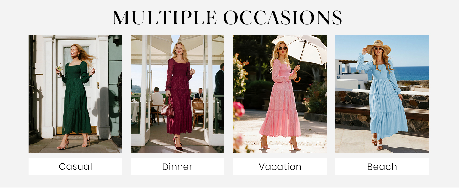 PRETTYGARDEN Womens 2025 Fall Long Dresses Smocked A Line Dress