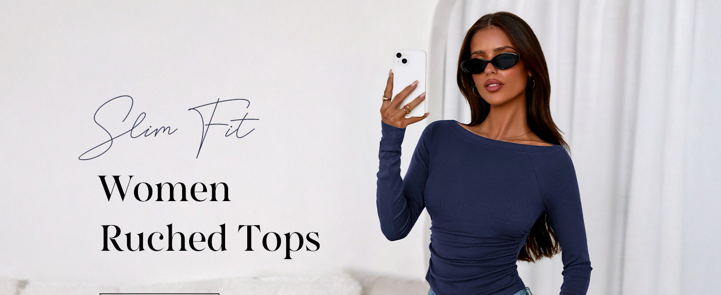 PRETTYGARDEN Fitted Long Sleeve Shirt Women Ruched Tops 2025 Fall Tees