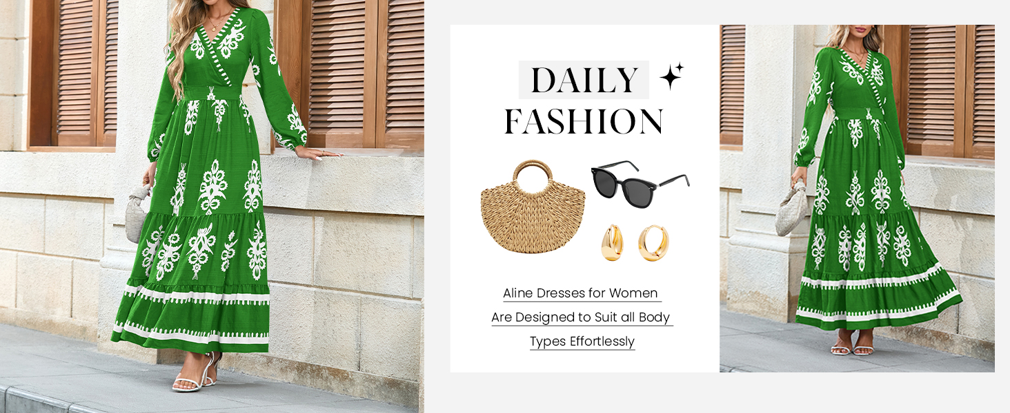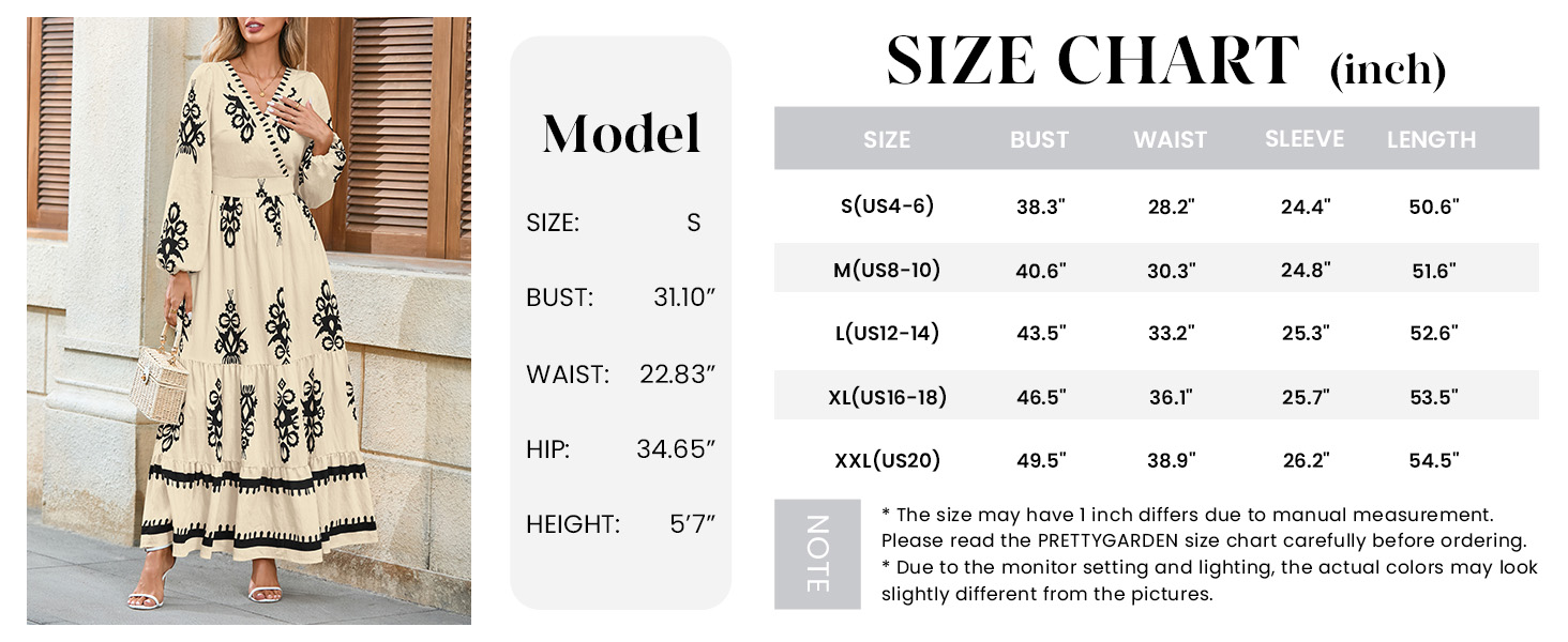 PRETTYGARDEN Bohemian Flowy Long Dresses for Women A Line Ruffle Ladies Dress