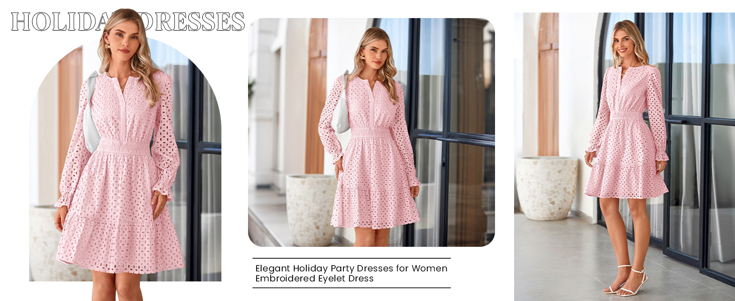 PRETTYGARDEN Long Sleeve Mini Dress for Women Hollow Out V Neck Fall Dresses