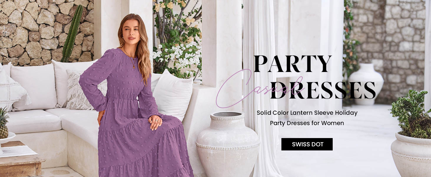 PRETTYGARDEN Long Sleeve Maxi Dresses for Women Fashion Swiss Dot Dress