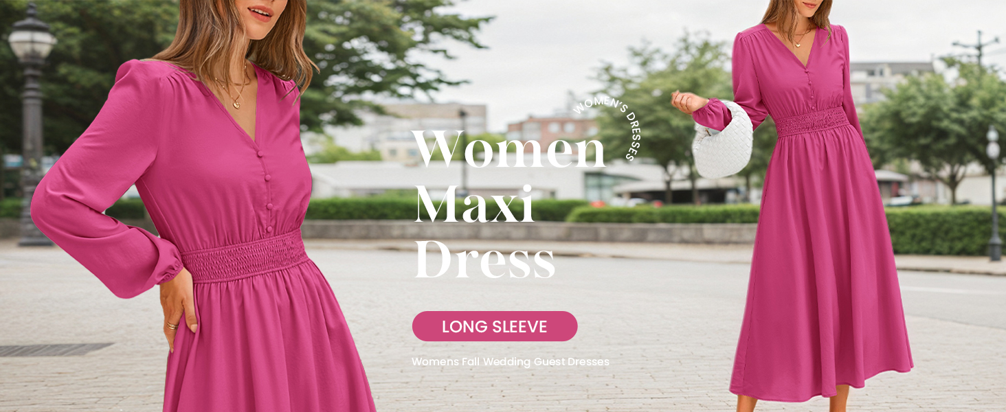 PRETTYGARDEN Fall Wedding Guest Dresses Long Sleeve Smocked Flowy Maxi Dress