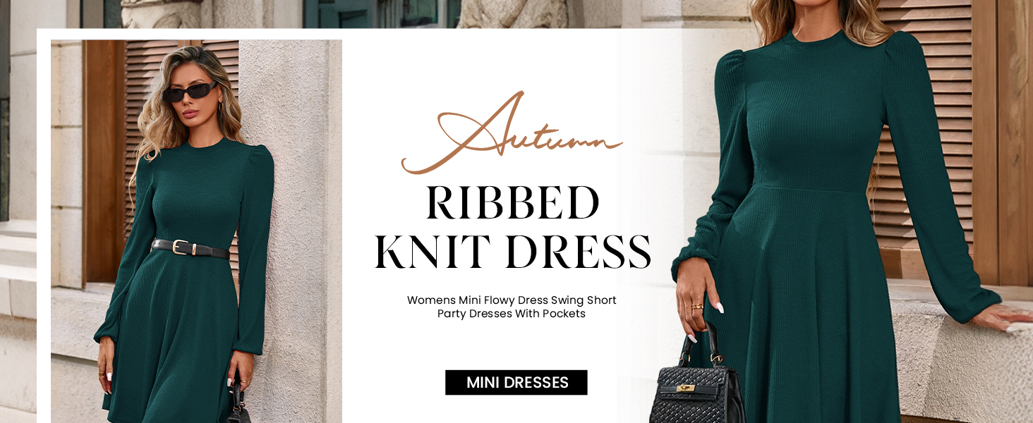PRETTYGARDEN Fall Mini Dresses For Women 2025 Lantern Sleeve Ribbed Knit Dress