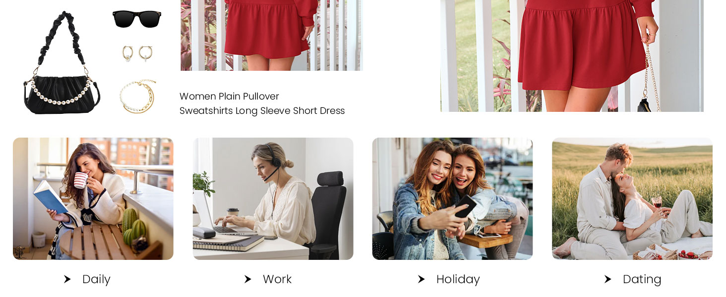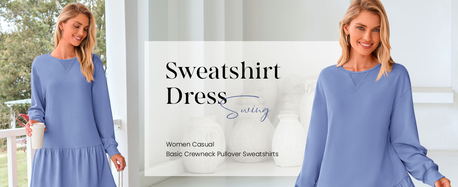 PRETTYGARDEN Sweatshirt Dress for Women Long Sleeve Swing Mini Dresses