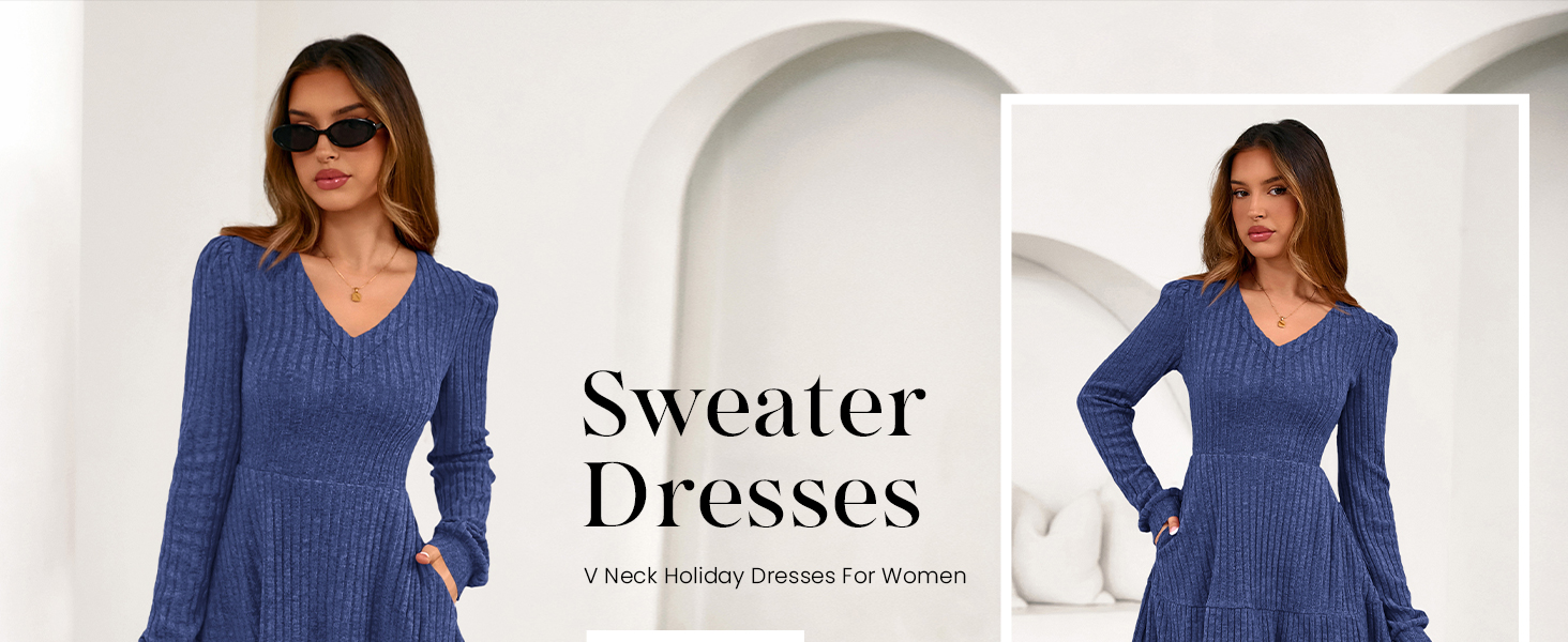 This cozy sweater dress for women features a soft warm fabric, V neck, and long sleeve design, perfect for winter dresses for women 2025.