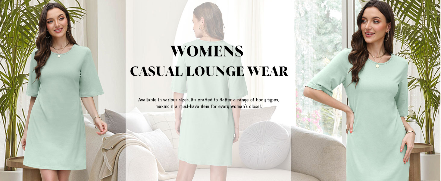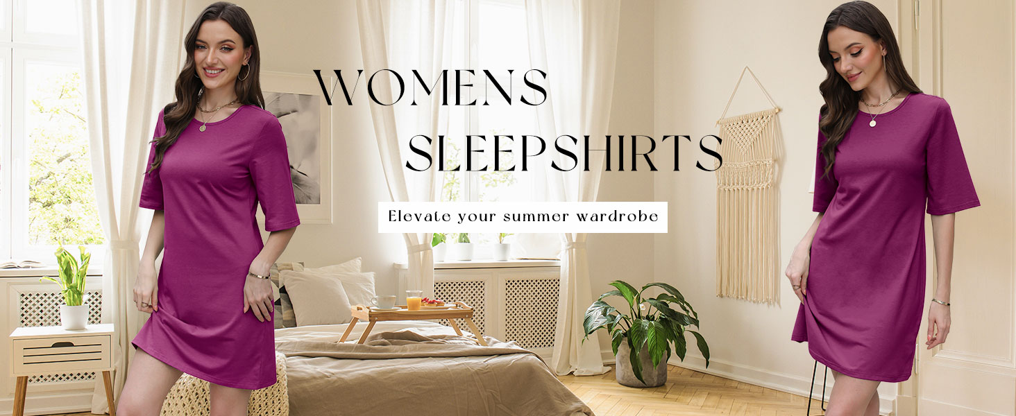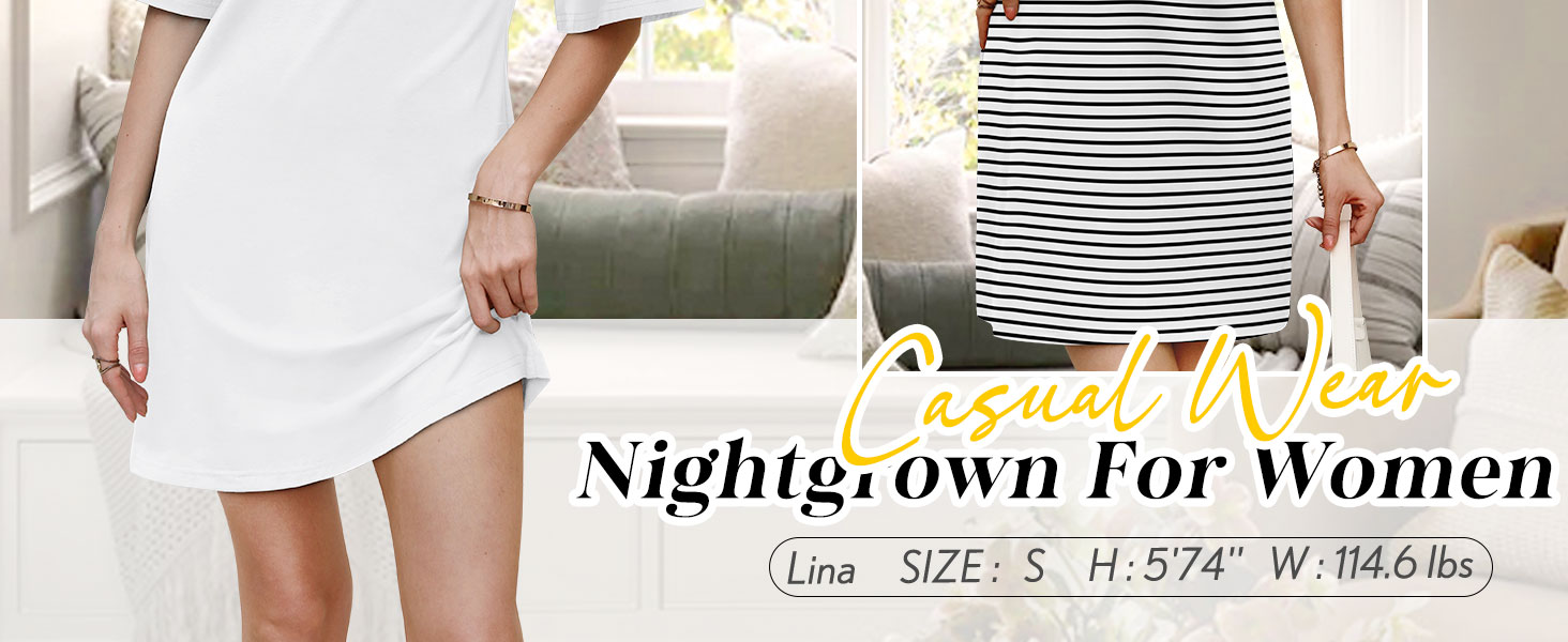 • WIHOLL Night Gowns for Women Short Sleeve Casual Sleep Shirt Loungerwaer Pullover Tshirts Dresses