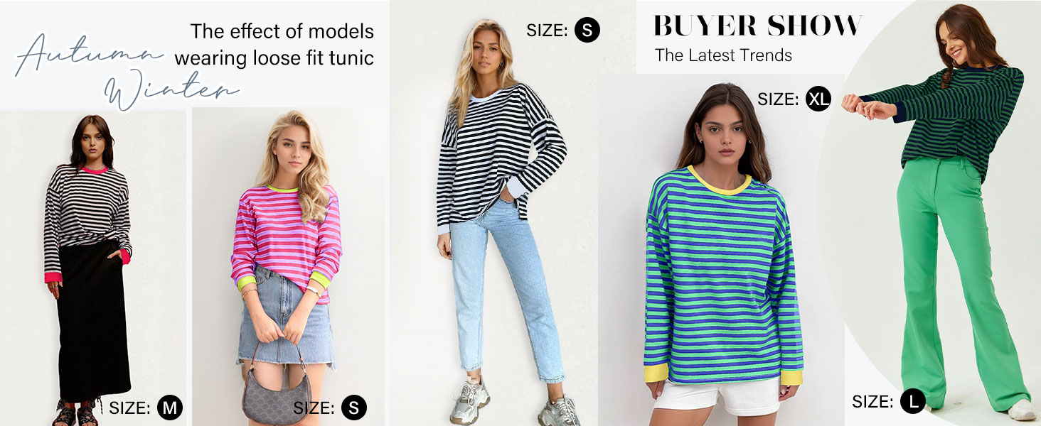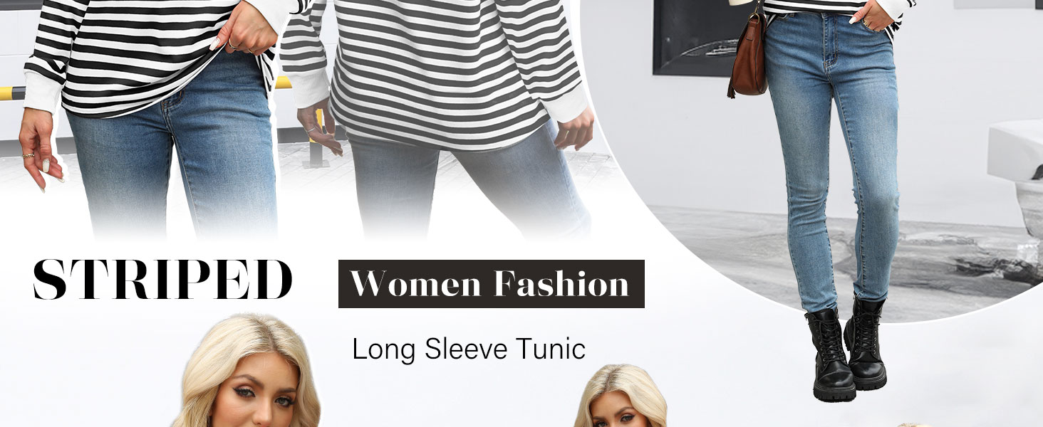 • WIHOLL Womens Tunic Tops Long Sleeve Striped Shirts Crewneck Tops